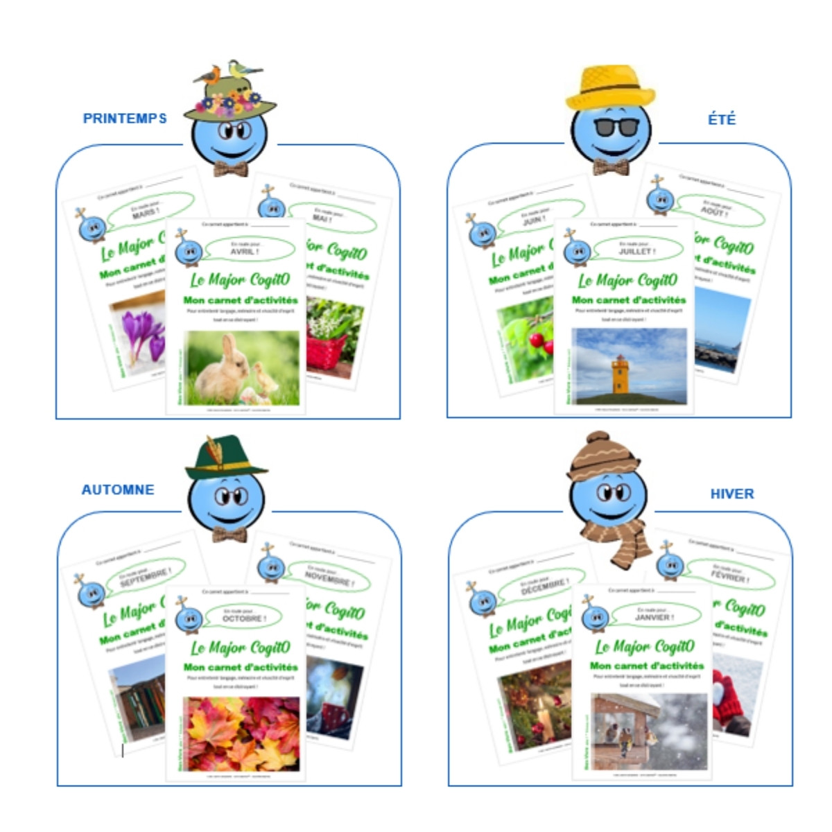 📆 Le Major Cogito, ce sont 12 carnets, conçus comme une collection qui suit le fil des mois et des saisons. Un peu comme un calendrier, mais rempli d’idées pour créer du lien, stimuler la mémoire, évoquer des souvenirs, chanter, rire ou s’interroger ensemble.